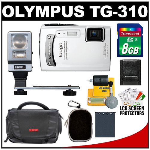 Olympus Tough TG-310 Shock & Waterproof Digital Camera (White) with 8GB Card + Battery + (2) Cases + Flash + Accessory Kit Review