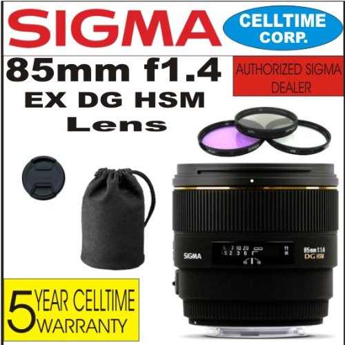 Sigma 85mm F1.4 EX DG HSM Lens for Nikon Digital SLR Cameras + 3 Piece Filter Kit with Case + Lens Case + Celltime 5 Year Warranty Review