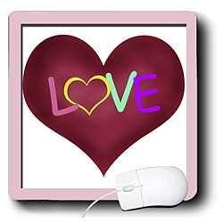 Big heart with love in bright colors in a light pink frame Mouse Pad is measuring 8w x 8h x .25d, soft commercial quality high resolution product. The image is permanent and becomes part of the mouse pad surface. Our transfer method produces professional matte finish with Premium Quality and Superior image resolution.